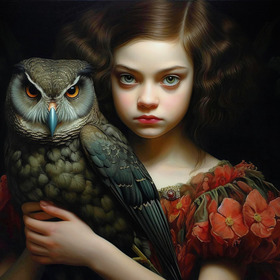 mädchen, eule, vogel, … en mit eule … seiner eule - wandb … maedchen mit eule wandbil
