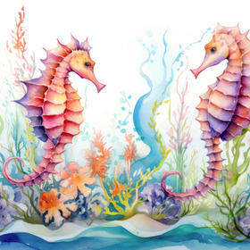 riert, illustration … uarell-illustration. … zwei seepferdchen illustration im aqua