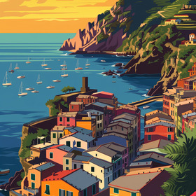 alien, illustration, italie … grafik illustration. … cinque terre illustration vector