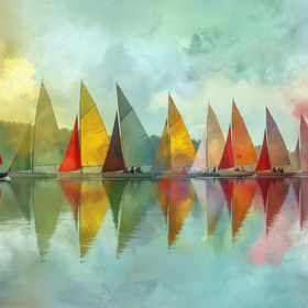segeln, segelboot, regatta … trakte segelboote … abstrakte segelboote gemäld