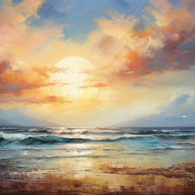 muschel, strand, sonnen … hel am strand … eine muschel am strand im stil … muschel am strand wandbil