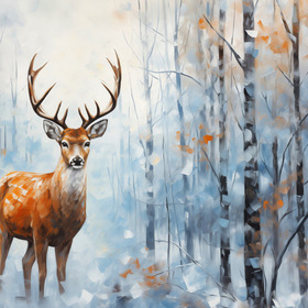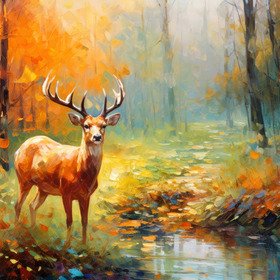 wald, hirsch … herbstwald … lichen wald im stil … hirsch im herbstwald gemaeld